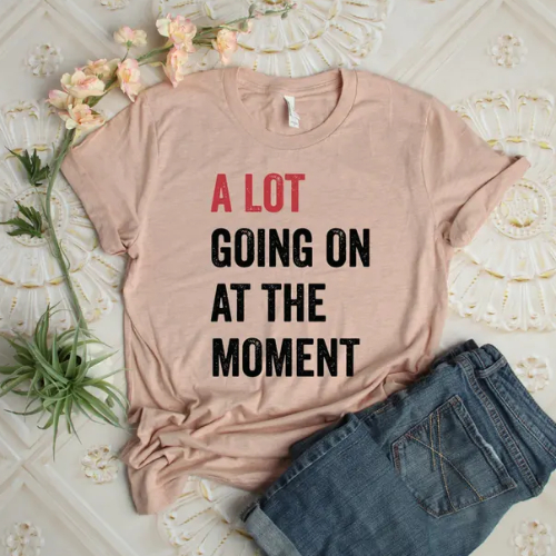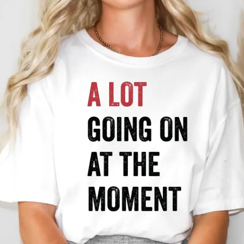 The phrase became popular when Taylor Swift started her Eras Tour. It describes both the big show and how life can be complex. The A Lot Going On At The Moment Shirt helps Swift's fans feel connected to each other. When fans see others wearing it, they know they belong to the same group.