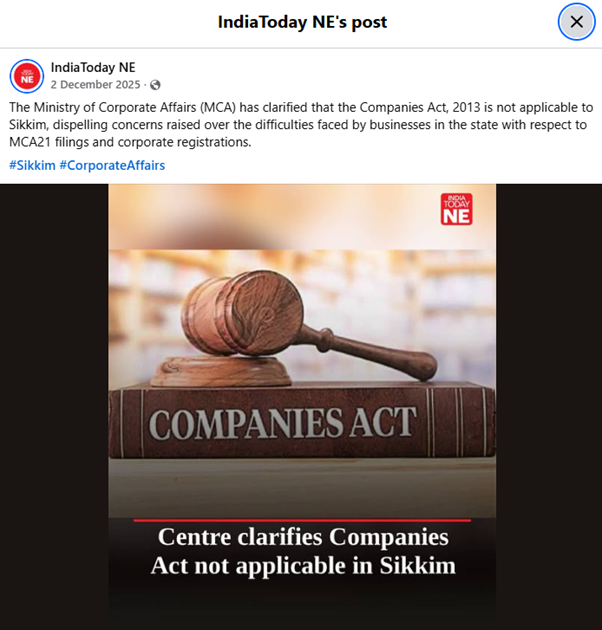 The MCA’s clarification makes one position abundantly clear: Sikkim cannot function in a regulatory grey zone any longer. With the Companies Act, 2013 explicitly ruled out, the onus now lies squarely on the State Government to ensure clarity, transparency, and effective corporate governance under its own legal framework. Businesses, professionals, and citizens alike now expect timely policy direction and corrective action to secure Sikkim’s economic future within its unique constitutional identity.